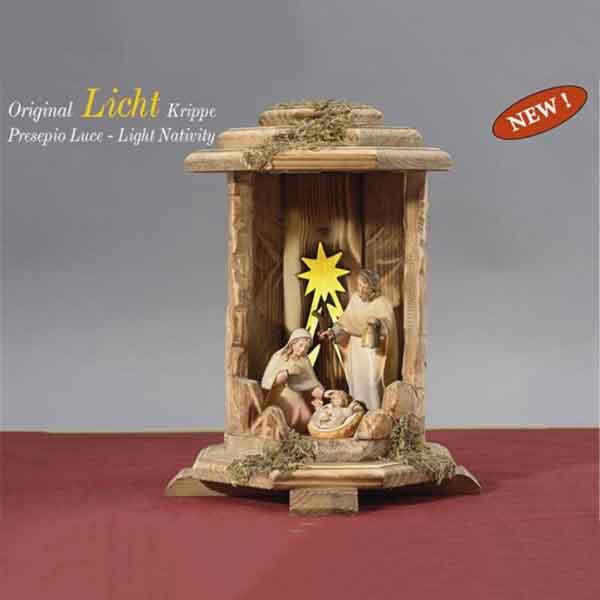 Il presepio Luce è un presepio moderno, caratterizzato dalla semplicità dei suoi personaggi. Le linee eleganti ne contraddistinguono la sua natura. Le statuine del presepio sono scolpite artigianalmente utilizzando il legno più pregiato e dipinte a mano dagli abili artisti gardenesi. Anche la capanna, realizzata in stile moderno, si adatta perfettamente allo stile del presepio.